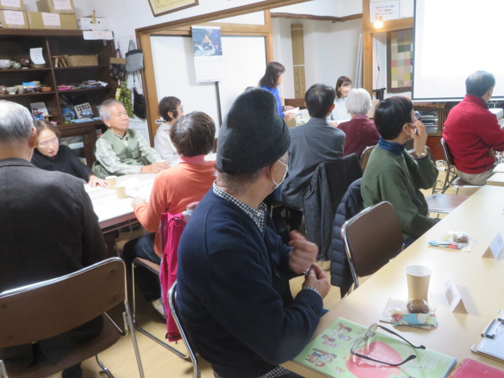 この交流会は、年1回、ボランティアや市民活動に関わる講演を聴くとともに、日ごろおむすびハウスのさまざまなイベントに協力していただいているボランティアの皆さんと運営委員と交流、親睦を図るために開催しています。