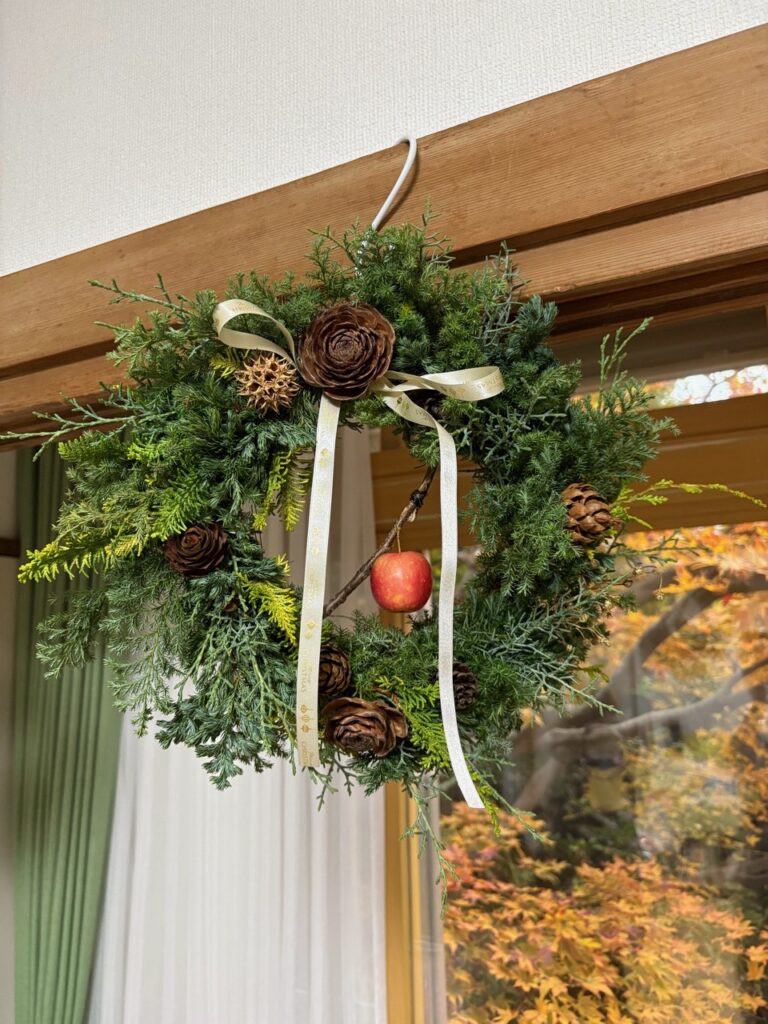 11月27日の「フラワーデザインを楽しむ会」のテーマは「クリスマスのリース」です。